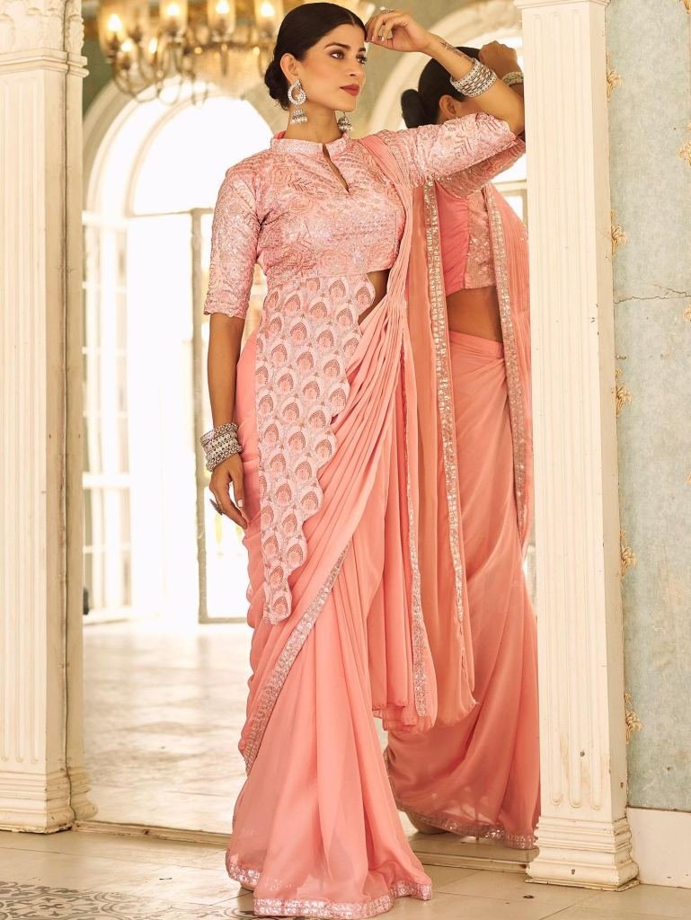 Ready To Wear Saree DetailsFabric:- ChinonWork:- Embroidery Work Lace Border With / Ready To WearBlouse DetailsFabric :- BangloryWork :- Stylist Heavy Embroidery Work/Full Stitch Up To 42 Inch
