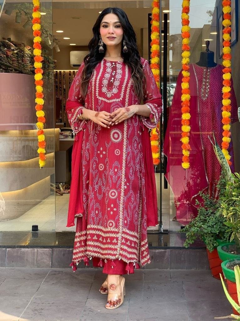 Color: RedFabric: Pure Dimond SilkInclusive: Top, Bottom & Dupatta With Free One Layerd Free Pretty Moti Mala(4 Piece Sets)Size - M , L, XL , XXL