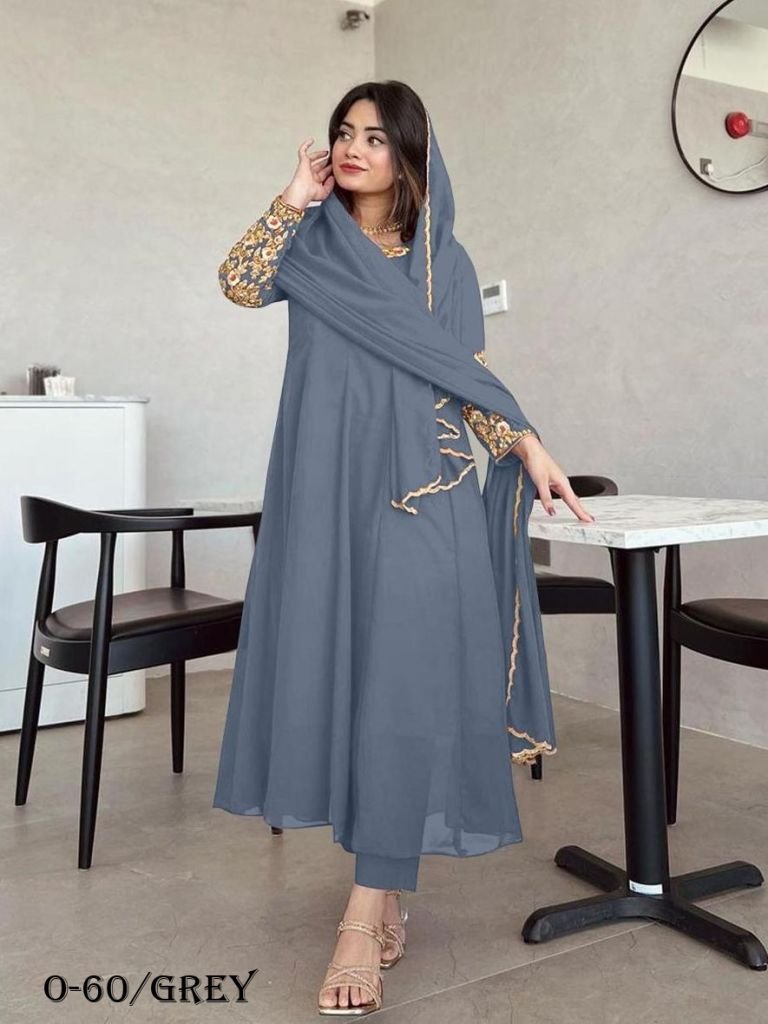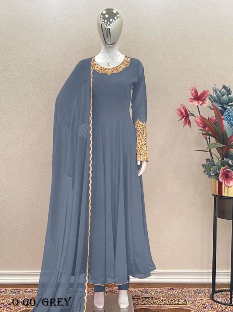 launching new party wear look heavy foux georgette anarkali gown,dupatta & bottom set