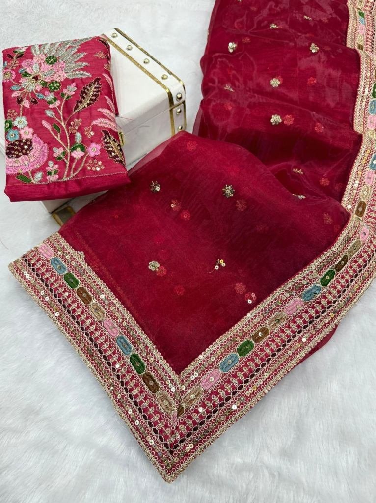 Sarees :pure Orgenza Silk Fabric With Multi Thread Sequence Embroidery Lace Border And All Over Saree’s Butta Work