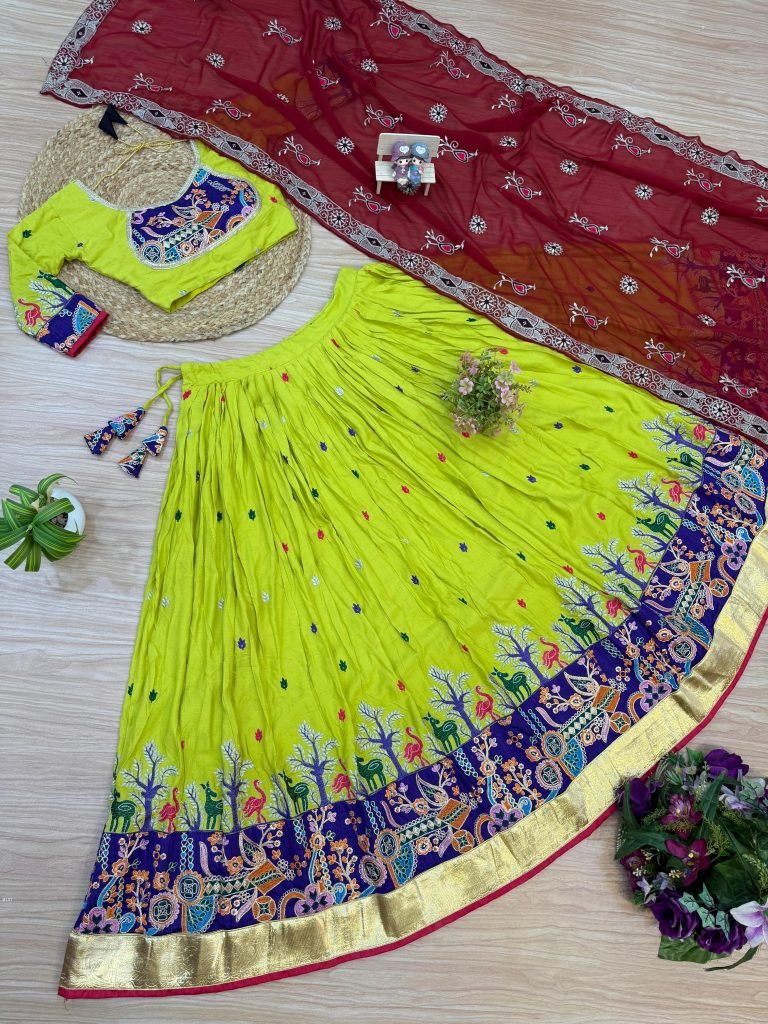 Full Embroidery Lemon Yellowish Navratri Lehenga