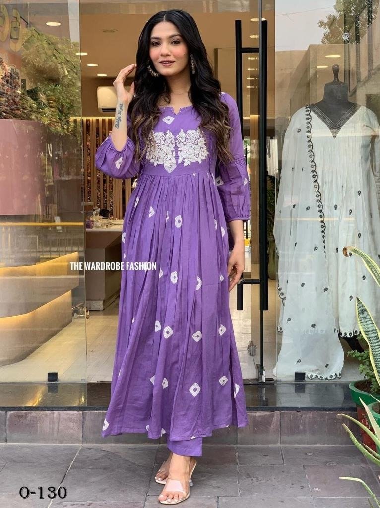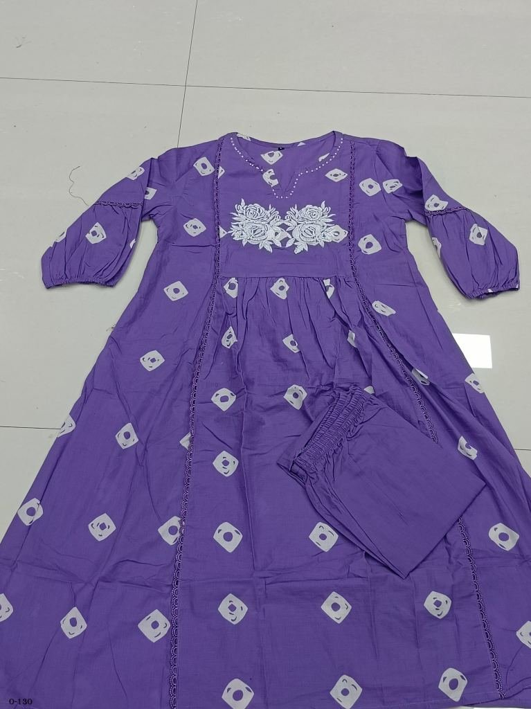 look stylish in our new bandage, discharge print long slit cotton 60'60 kurta pant set for all day comfort