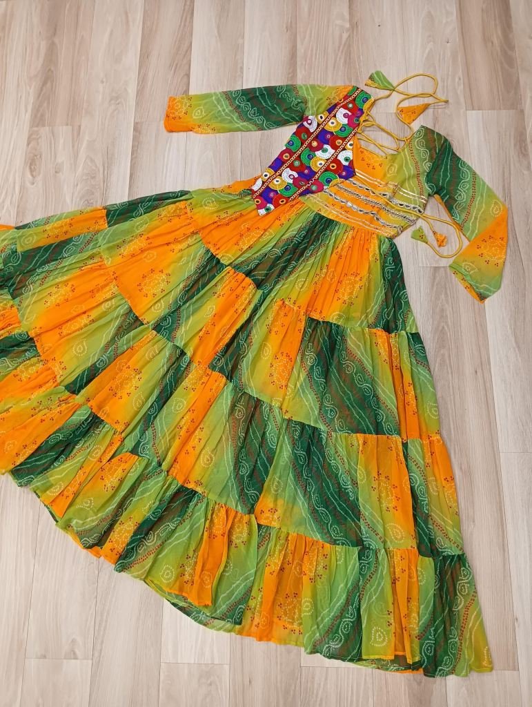 Fabrics & Work :- Laheriya & Bandhej Print with kutchi patche work in Faux Georgette.