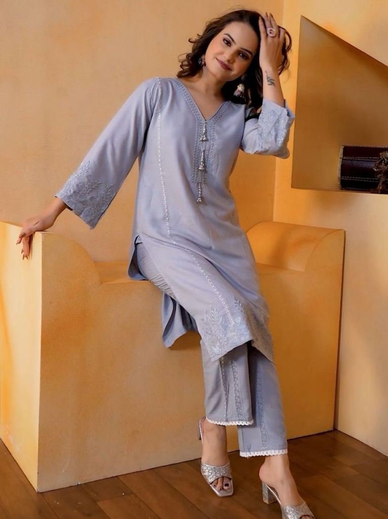 For Trending Running Wear Co-ord Set Pair With Beautiful Embroidery Work