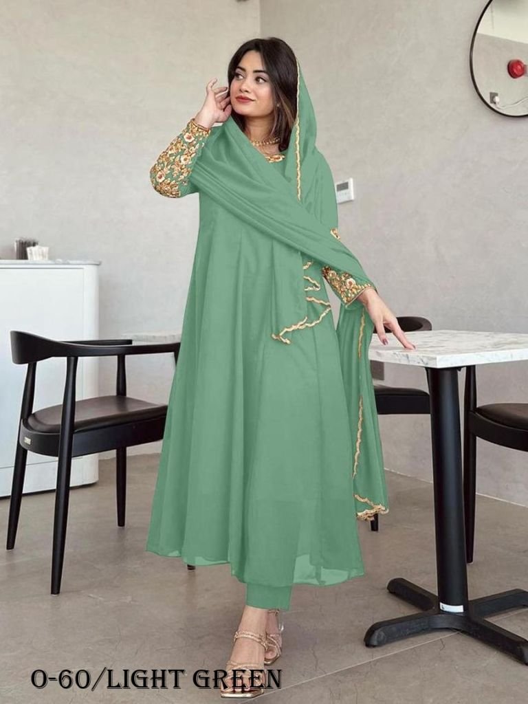 launching new party wear look heavy foux georgette anarkali gown,dupatta & bottom set