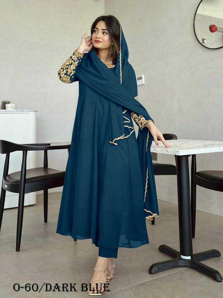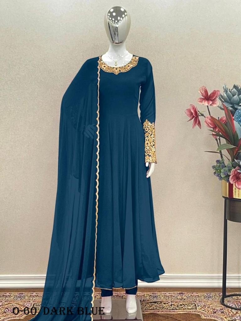 launching new party wear look heavy foux georgette anarkali gown,dupatta & bottom set