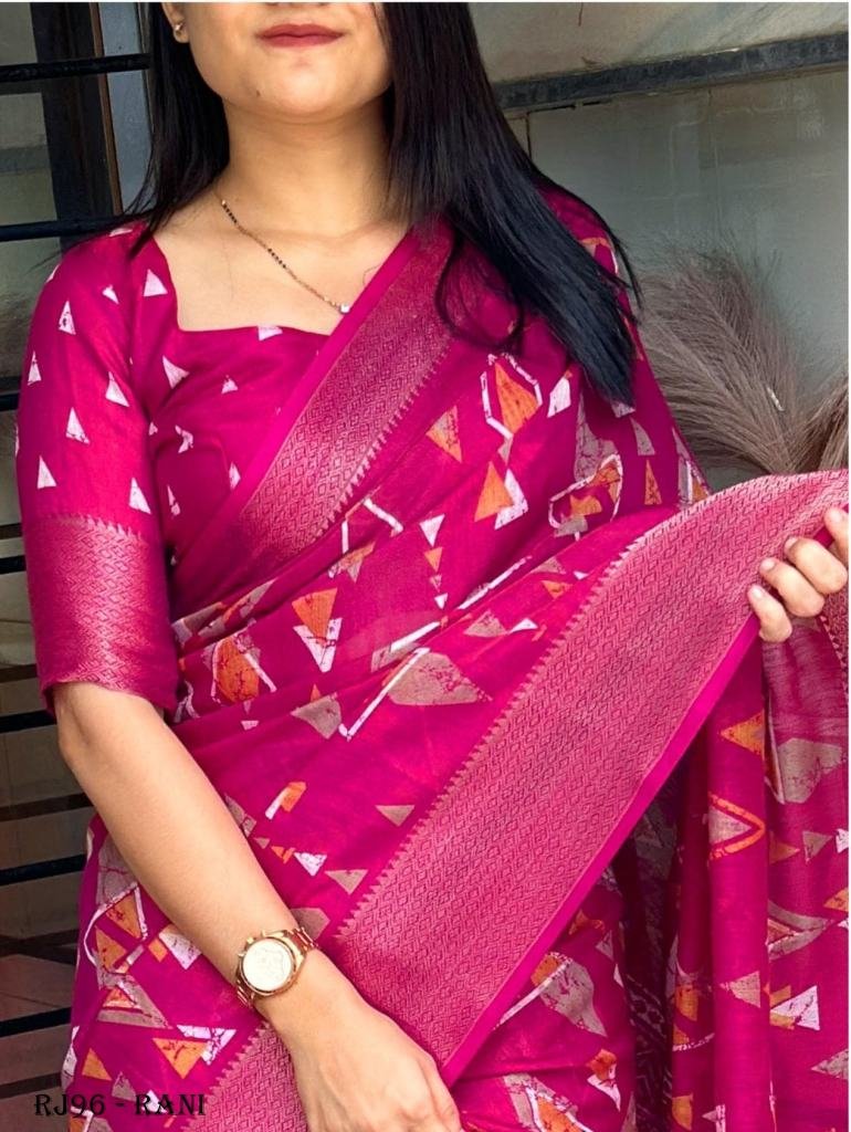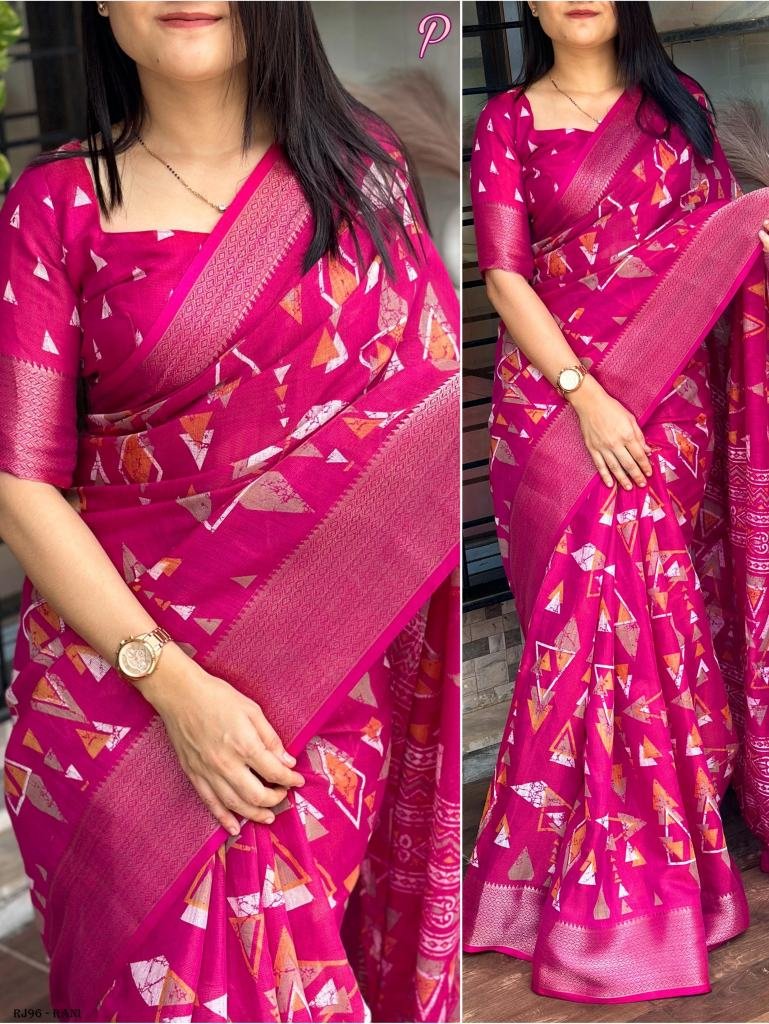 Pattern-Designer hand printed saree with zari weaving in full saree and zari boder & tussles in pallu