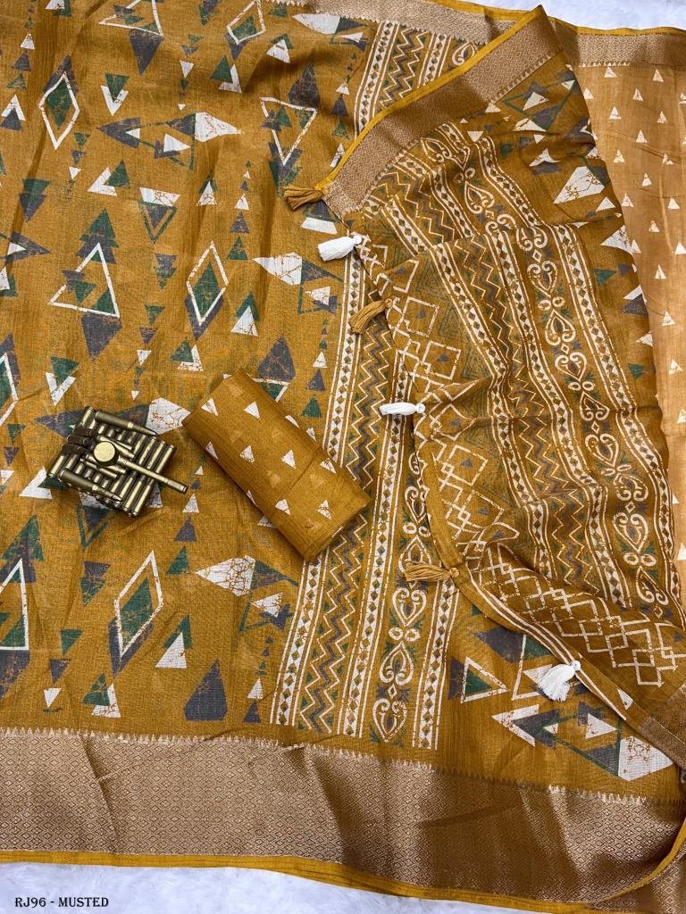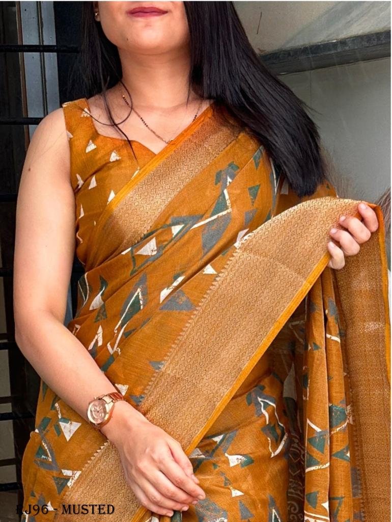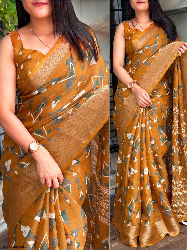 Pattern-Designer hand printed saree with zari weaving in full saree and zari boder & tussles in pallu