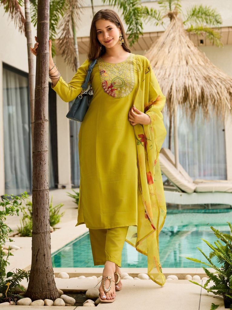 Women's Rayon Embroidered Straight Kurta with Pant And Dupatta Sets