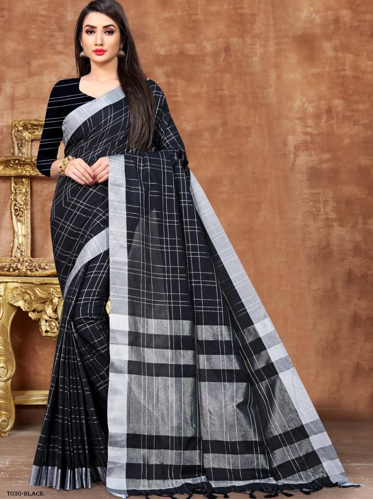 Silver PattaFabrics : Soft Cotton SilkSarees : 6.20 MTR Full Length Saree And Contrast Pallu With Contrast Matching Blouse With Tressal