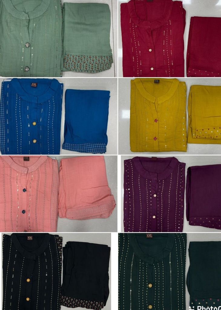 Fabric: Heavy Rayon Slub Print + Pintex and Work Sizes: M:38” L:40”XL:42”XXL:44”3XL:46”Length:Top:45”Pant:39”