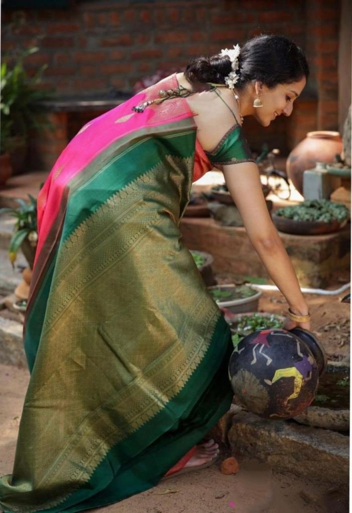 Technique - This Splendid Masterpiece is made of the finest KADWA technique. KADWA WEAVE is the most laborious, ponderous Artistic tradition of Banaras.