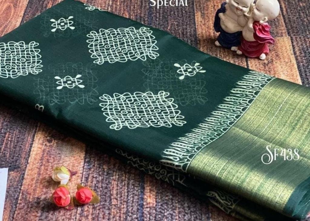 Material : SOFT COTTON with zari border and traditional kolam print Superb kolam Saree with kolam butti in blouse and pallu....Don't miss to update..!!