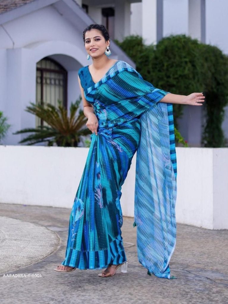 Fabrics :- Faux Georgette(5.50 Mtr.)BLOUSE :- SILK(1.00 Mtr.)WORK :- Digital Print With Heavy Sequence Crochet Embroidery Stich WorkWeight :- 1.00 KgWash :- First Time Dry Clean