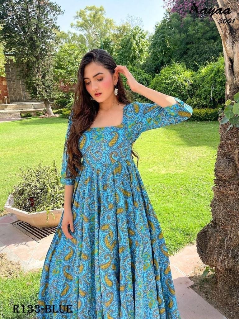 Fabrics :- Pure AB COTTON With Digital Printed WorkSize :- M-38, L-40, XL-42 & XXL-44”Length :- Max Up to 55”Flair :- Approx 3.00 MtrType :- Fully Stiched Wash :- First Time Dry Clean