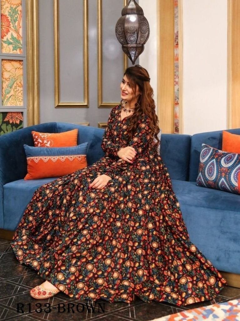 Fabrics :- Pure AB COTTON With Digital Printed WorkSize :- M-38, L-40, XL-42 & XXL-44”Length :- Max Up to 55”Flair :- Approx 3.00 MtrType :- Fully Stiched Wash :- First Time Dry Clean