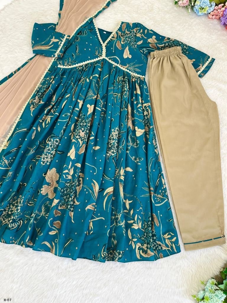 Top - Pure Viscous pv Chanderi Mill Printed With All Over Foil Touchup , Alia Neck Pattern Fancy Lece Neck , Top Flair 3+ Mtr