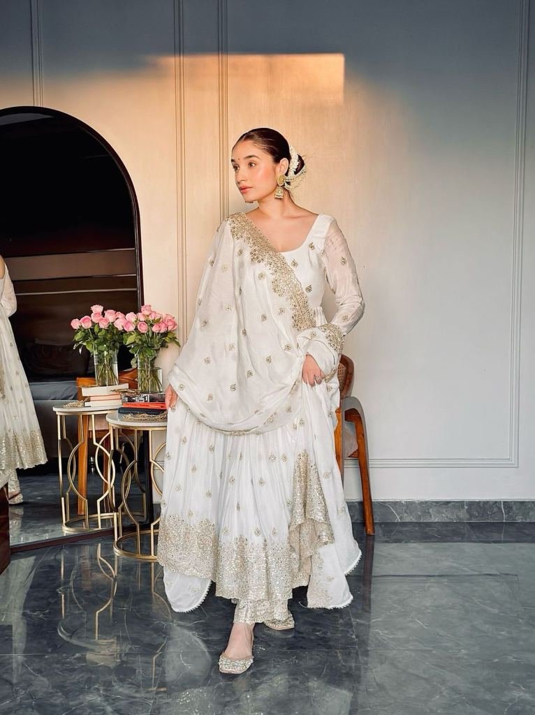 Gwon Fabric : Pure Cinon Silk With Heavy Embroidery 5mm Sequence Work With Full 24-25 Inch Sleeve With (Attached Ped)