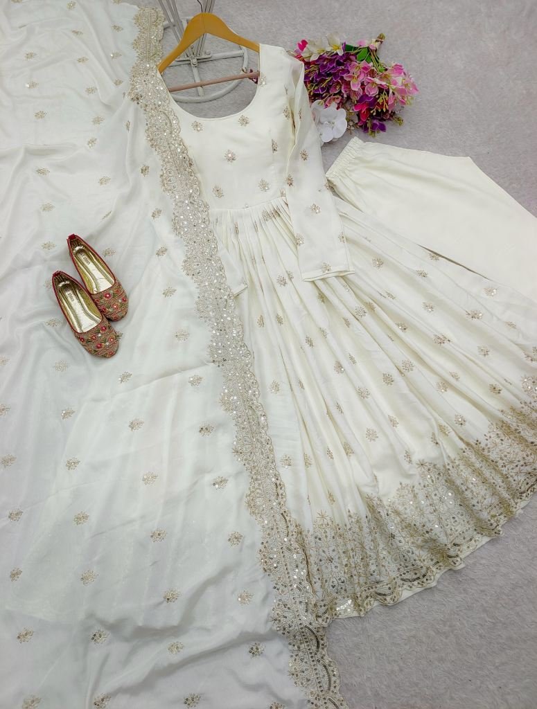 Dupatta Fabric : Pure Cinon Silk With Embroidery 5m Sequence Work With Full-Stitch
