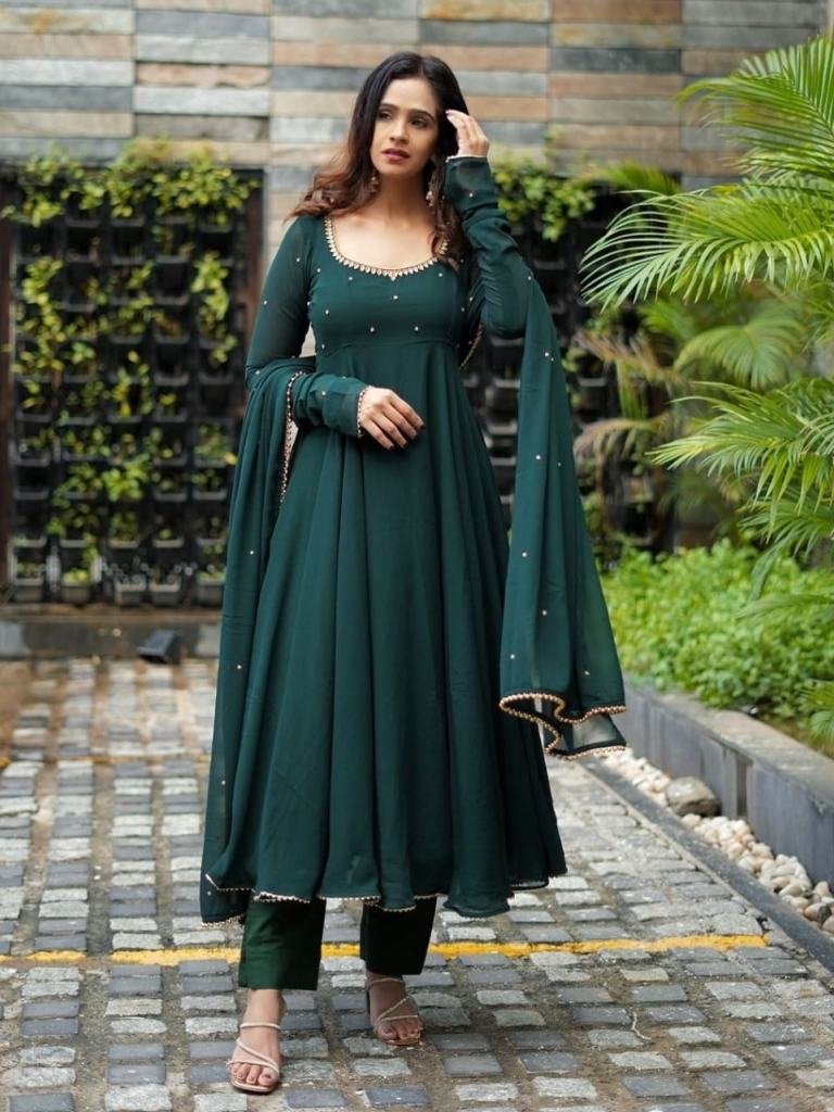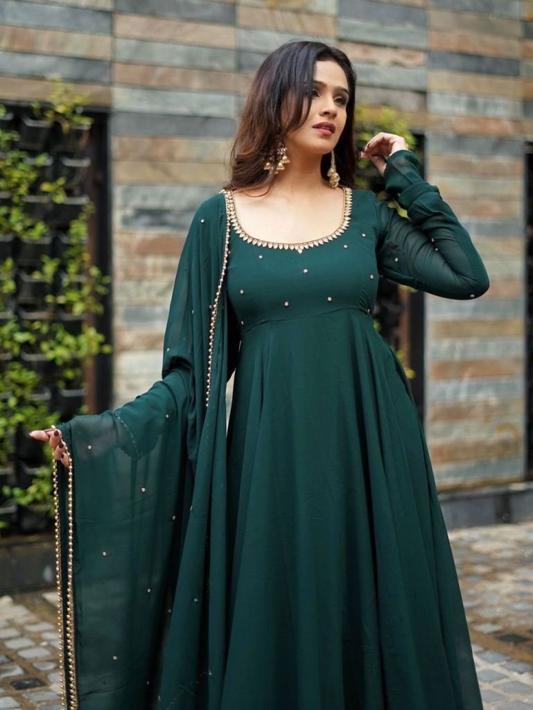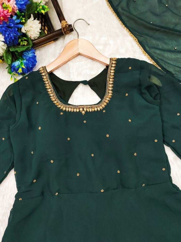 Material :- Fox Georgette Linning :- Complete Length :- 50"+Sleeves length :- 21 inchesDupptta Fabric :- Fox GeorgeWork :- Handwork Fabric :- Smooth And Comfortable