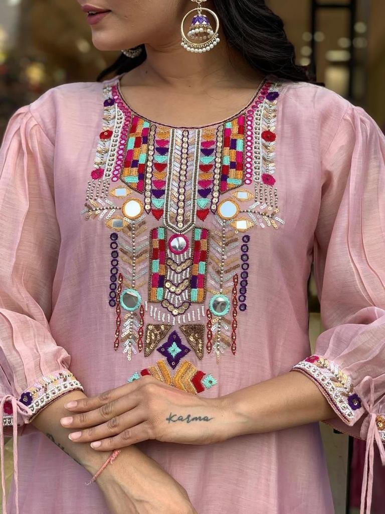 Fabric :- ChanderiWork :- Mirror WorkSleeve :- Fancy Length:- '47
