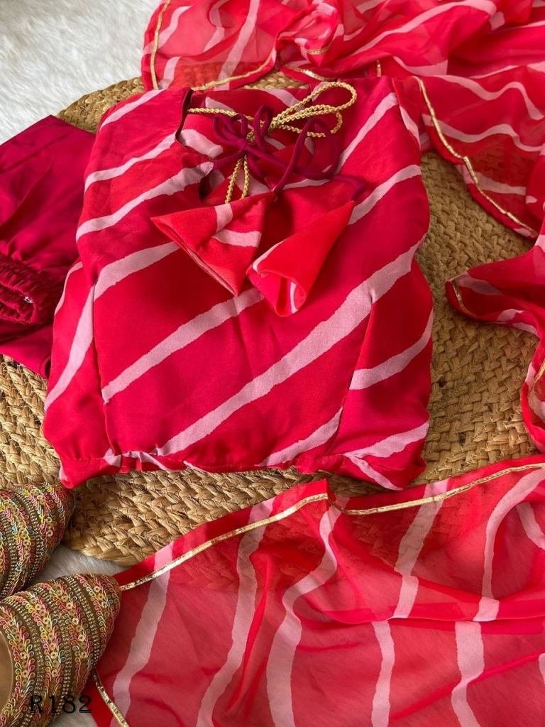 Dupatta : Organza Taby Silk With Digital Print , Four Side Golden Gotta Lece Broder ….