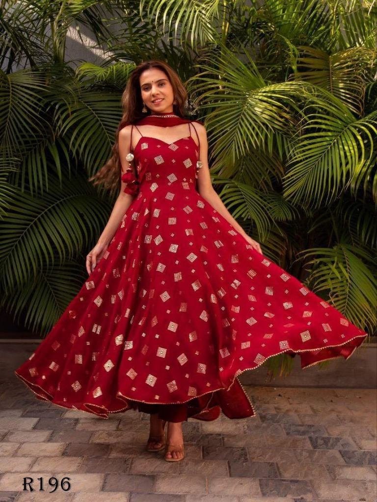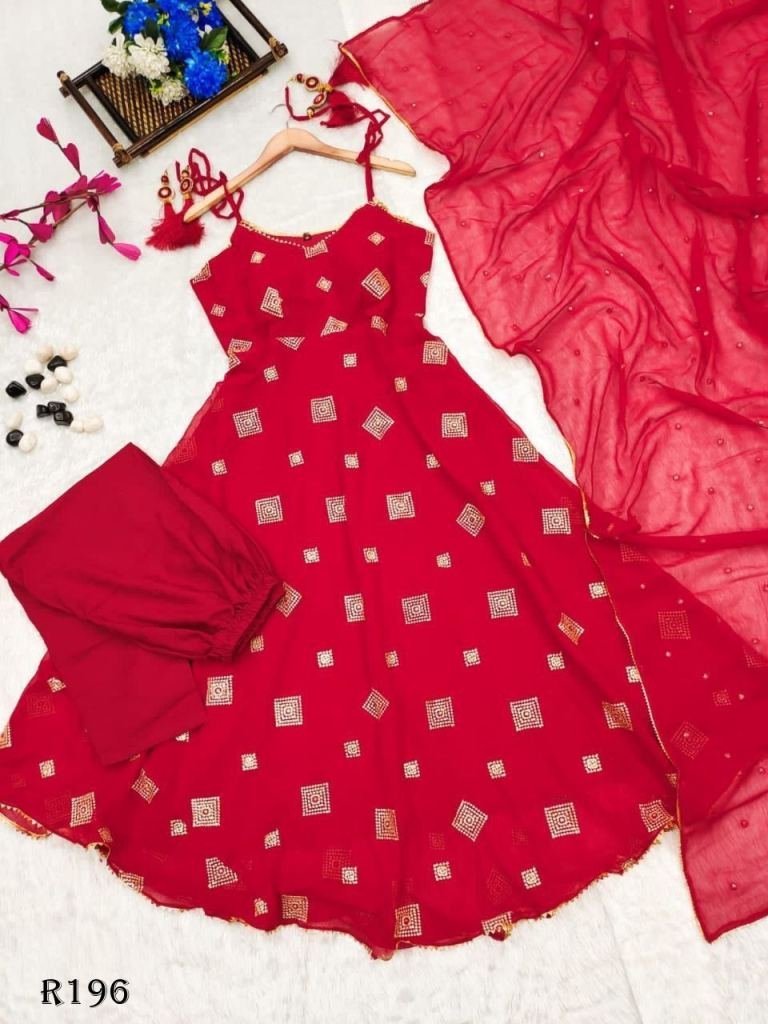 DETAILS Material :- GeorgetteLength :- 50 inchesFlare :- 4 mrtsSlevees :- Tye Up Work :- EmbroideryNeckline :- V-NeckFabric For Dupptta :- Blooming GeorgetteFabric For Bottom :- Micro