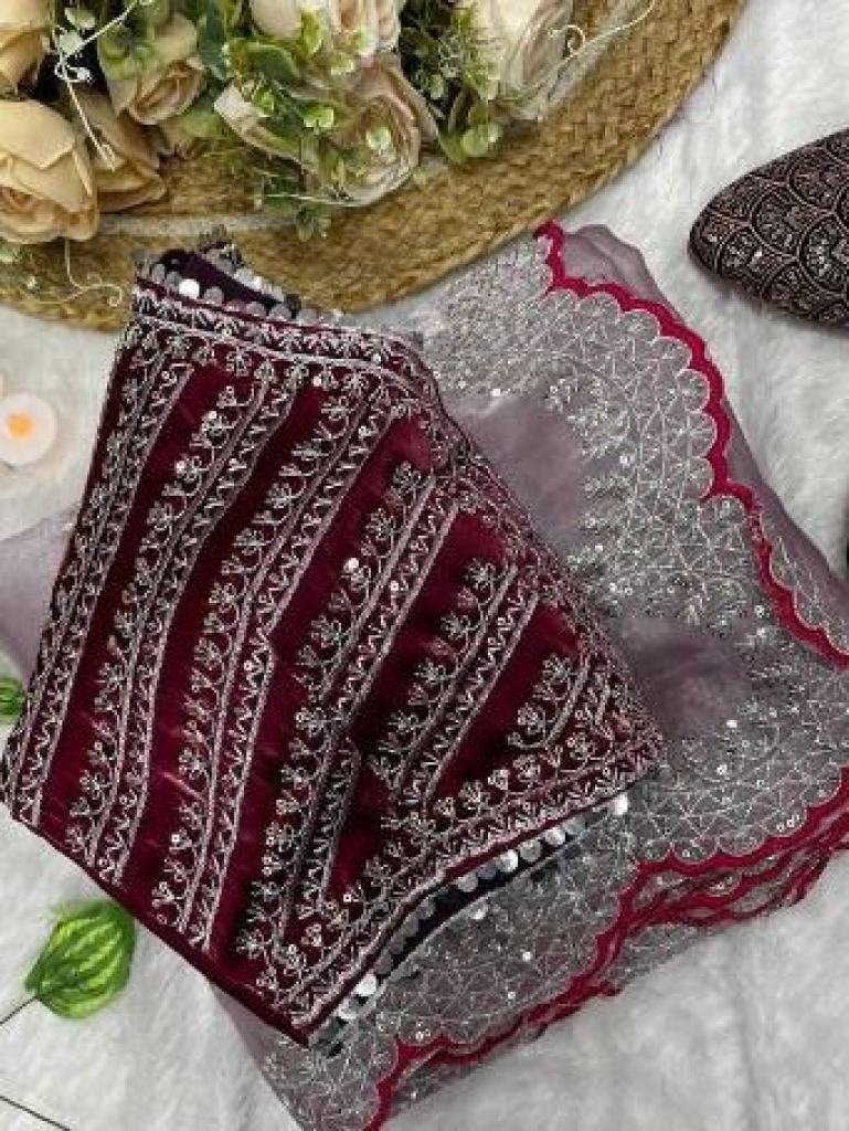 • Party Wear Sequence Zari Work Jimmy Chhoo Satin Saree