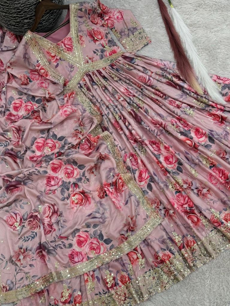 Gown Work : Fancy Digital Print With Heavy Embroidery And Sequins Work