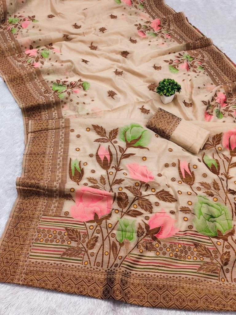 Saree :- Banarasi Cotton Blend saree with self Zari Woven Work design all over the saree & zari weaving Rich pallu with zari weaving unique border & heavy rich Pallu.