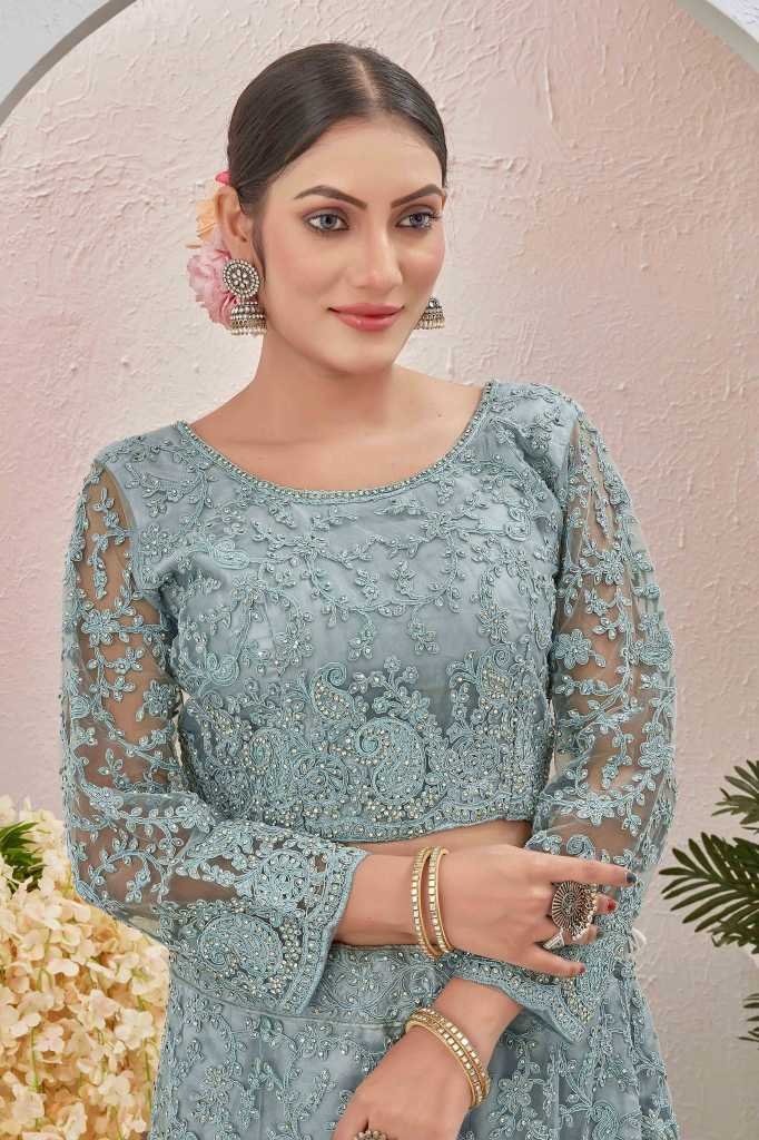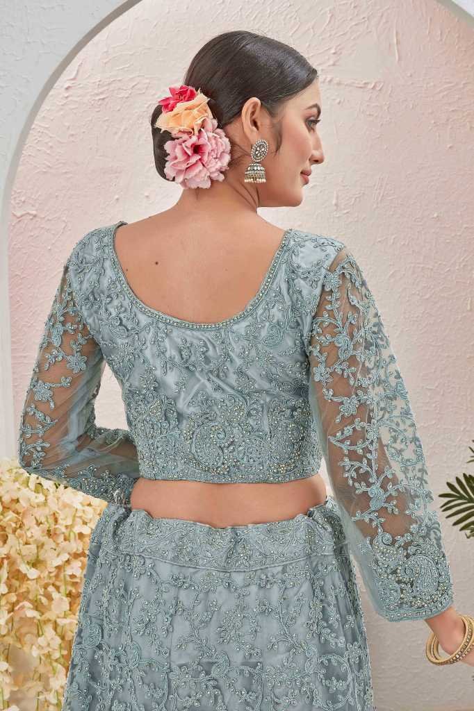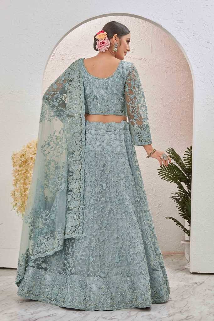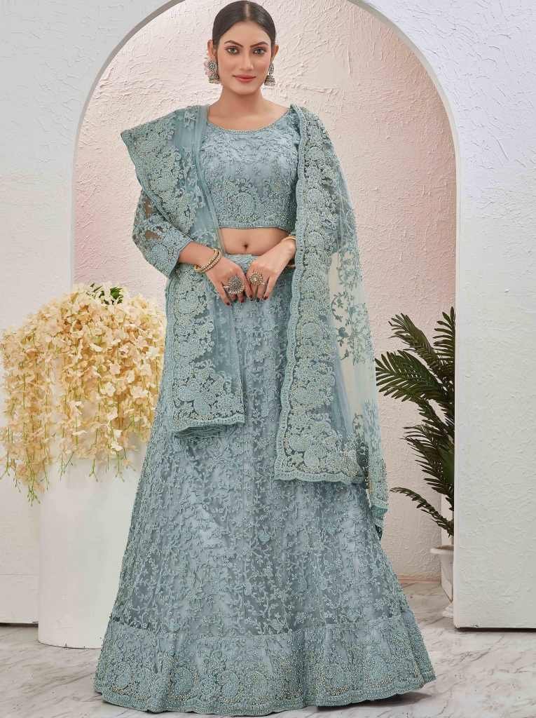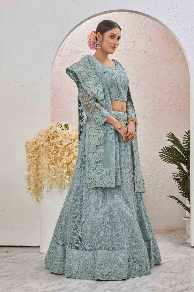 Lehenga Fabric: NetBlouse Fabric: Butterfly netDupatta : YesDupatta Fabric : NetLehenga Lining Fabric: satinPattern:Embroidered and stone worklehenga: Semi stitchedBlouse : Unstitched