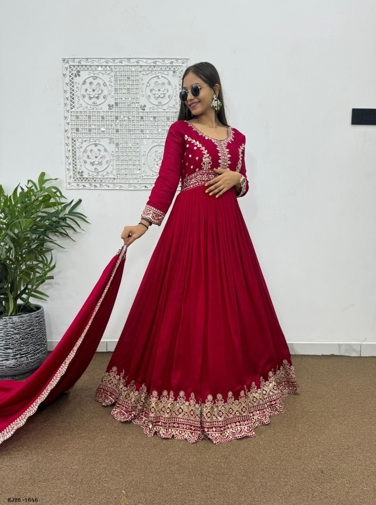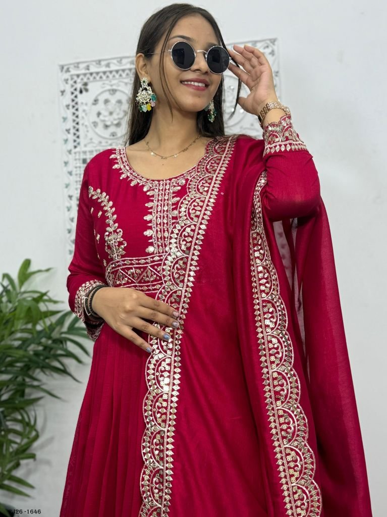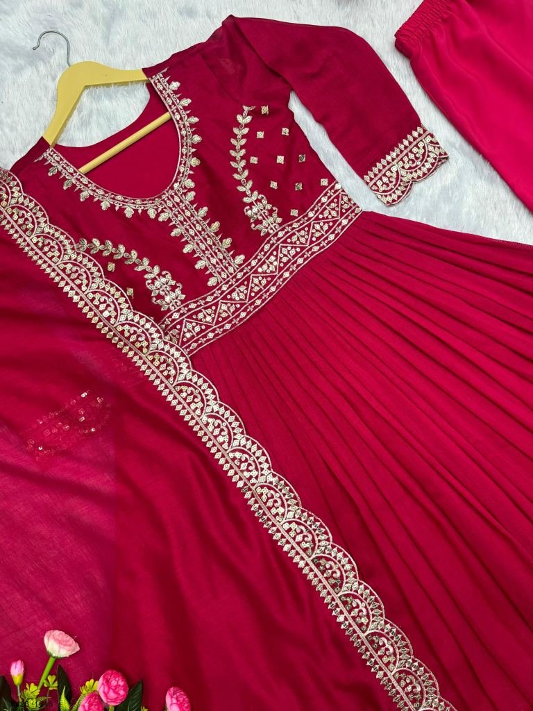 Launching New Designer Party Wear Look Beautiful Embroidery And Sequins Work Long Gown - Pent With Dupatta