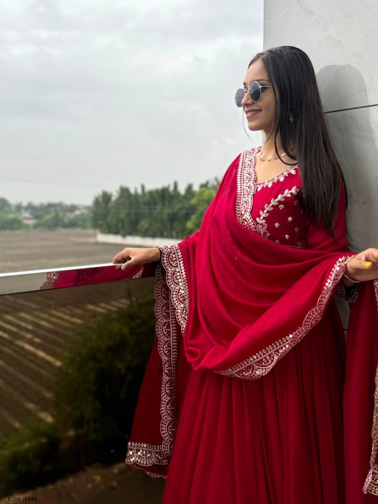Gown Fabric : Heavy Blooming Vichitra Silk And Sleeve With Work