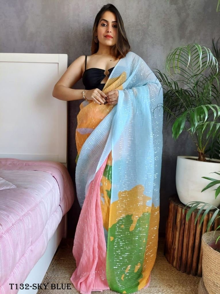 saree fab. : beautiful shaded color in heavy georgette