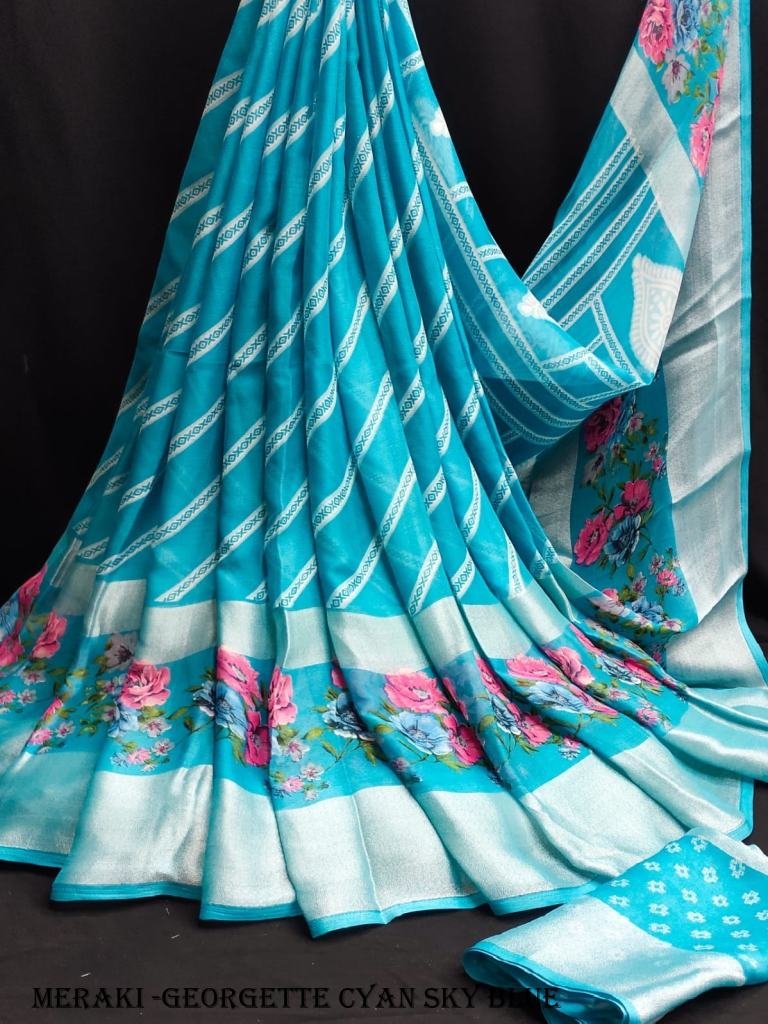 beautiful light weight pure moss Georgette sarees with all over bandhini with flower design along with pure viscose border design border flower pallu