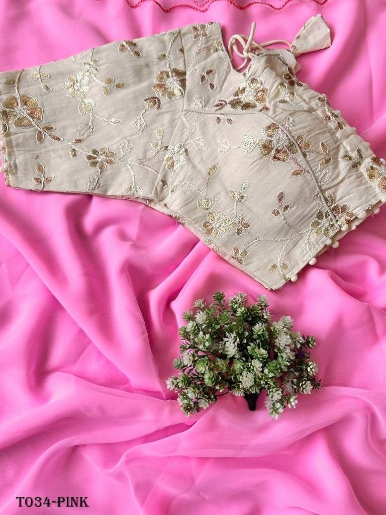 Stay beautiful with our new Georgette saree collection with beautiful aari border and Khadi Cotton siquance work designer blouse