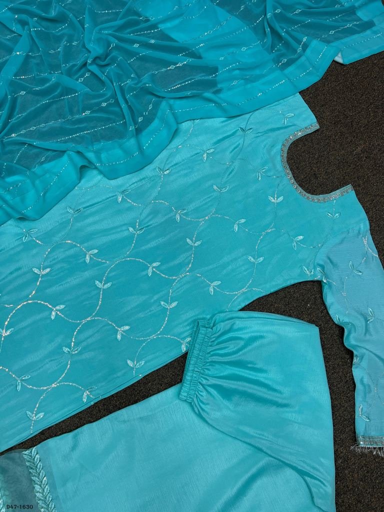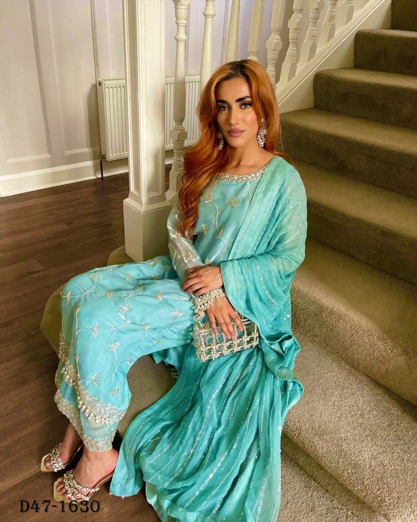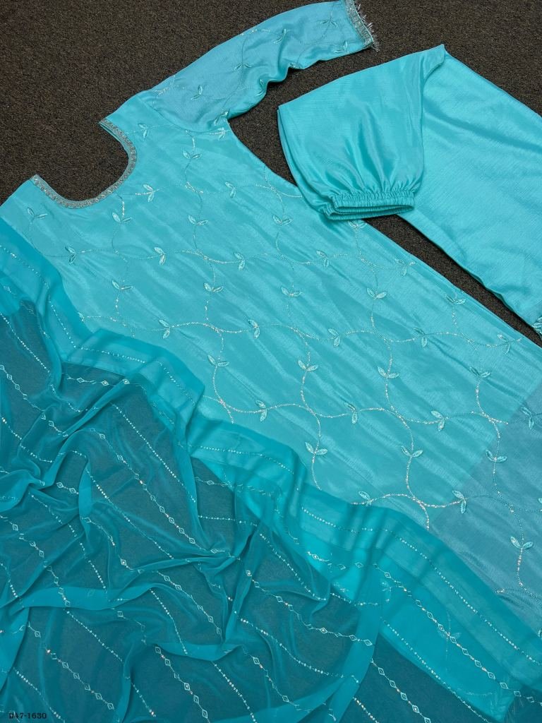 Launching New Super Hit Designer Collection Beautiful Embroidery And Sequins Work Kurti - Palazzo With Dupatta