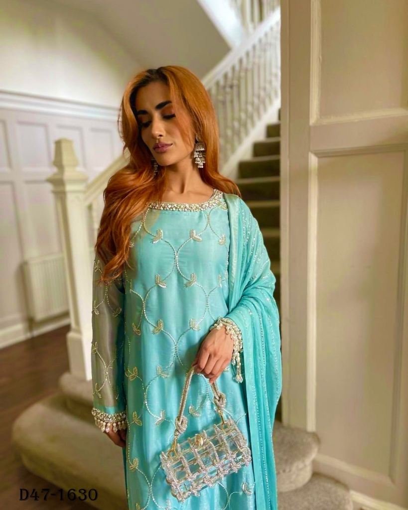 Palazzo Fabric : Pure Chinon Silk And Organza Silk With Embroidery And Sequins Work