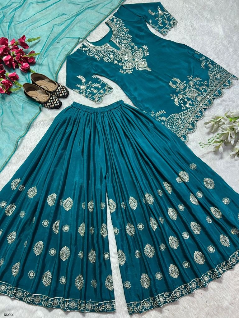 Sharara Fabric :- Hevay Pure Chinon Silk With Heavy Embroidery 5mm Sequence Work