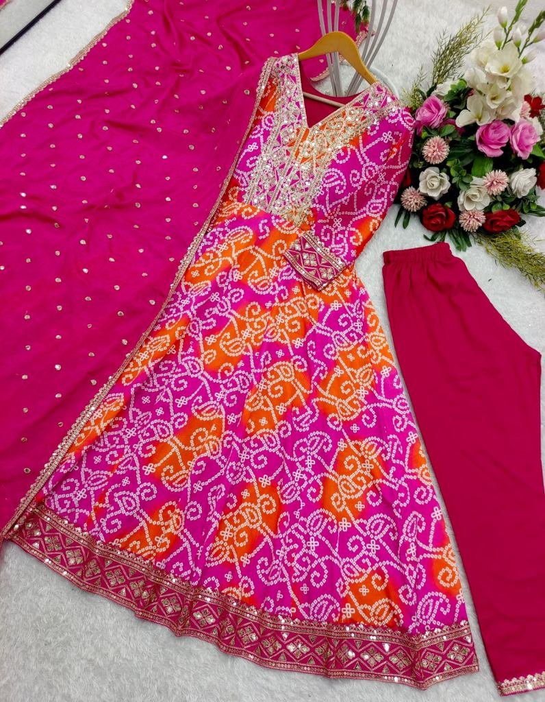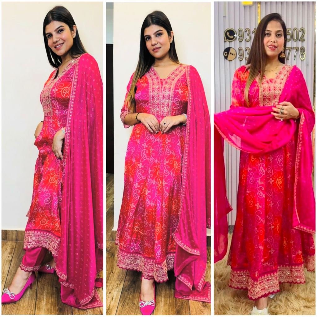 Presenting New Anarkali Gown -Pent Dupatta Set Fully Stitched Ready To Wear
