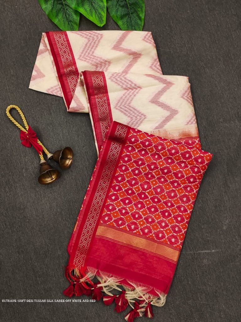 Fabric: Soft Desi Tussar silk saree with all over laheriya (zigzag) pattern and traditional rich ikkat pallu with tiny contrast zari woven border and fancy tassels with contrast fully ikkat weaves blouse piece
