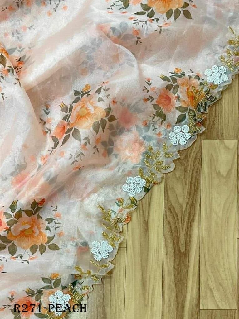 Fabric :- OrganzaPattern :- Work, PrintedPrint :- FlowerWork :- HandcraftedSaree Length :- 5.5Blouse Length :- 0.8