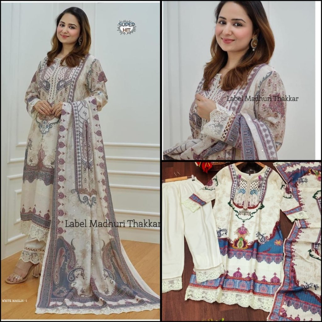 Beautiful printed Maslin kurta set with beautiful lace in neck, Daman and.sleeves with full Sequence Work in kurta
