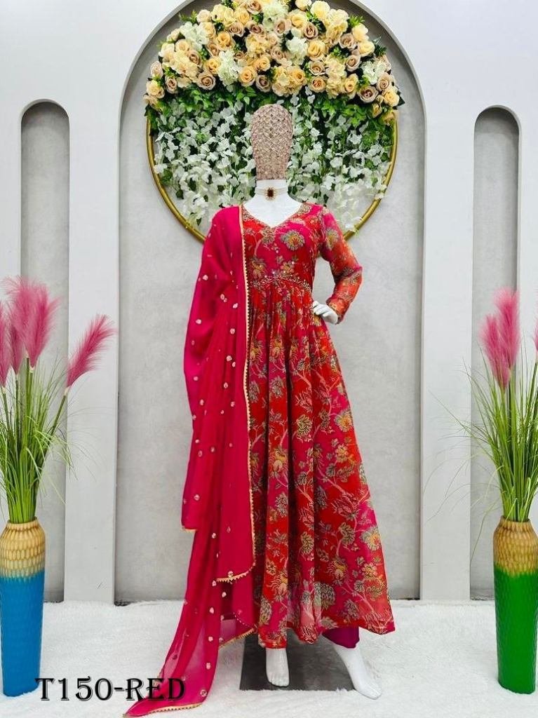 Looking for this same color beautiful Designer Suit On havy Faux Georgette febric with inner and Digital print & Hand work