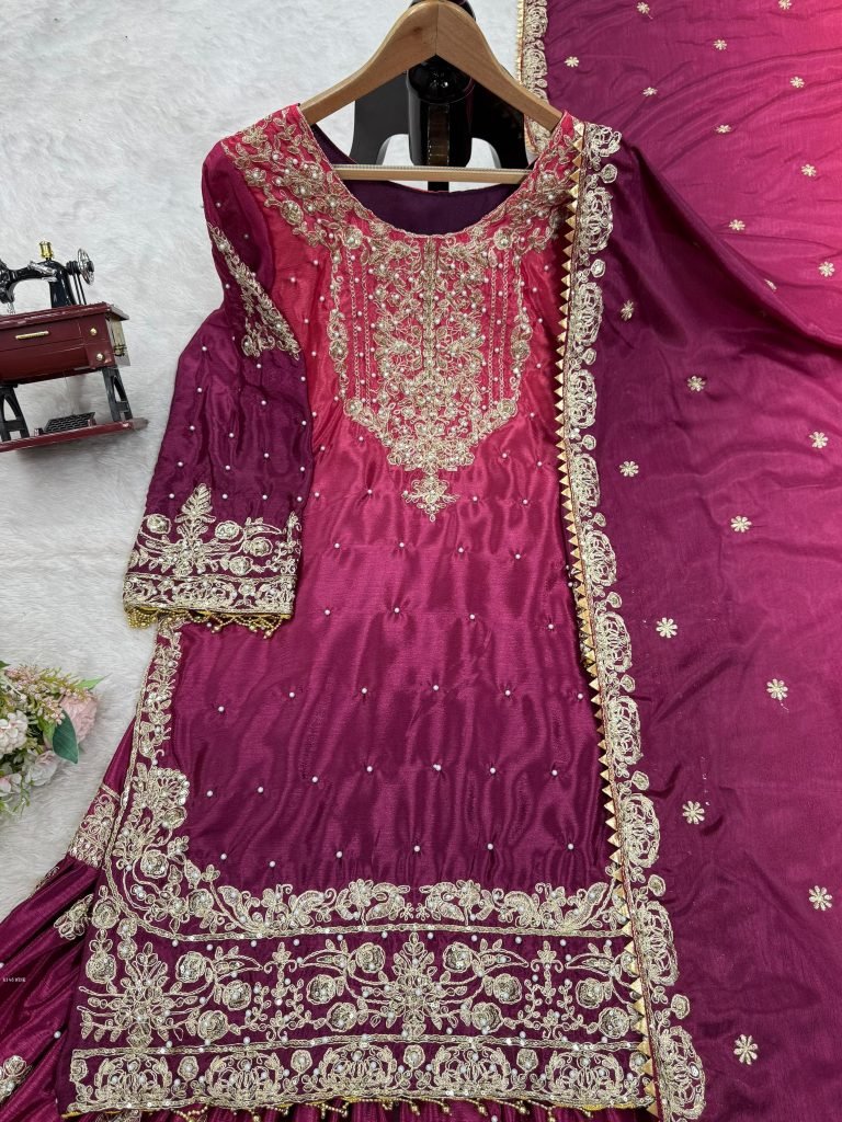 Looking For This Same Colour Beautiful Designer Suit On Heavy Chinon Fabric With Inner And Coding & Sequence Work With Pearl Work And Sharara On Also Heavy Chinon Fabric With Coding & Sequence Work With Pearl & Fancy Lace And Dupatta On Also Heavy Chinon Fabric With Coding & Sequence Work With Pearl & Fancy Lace.