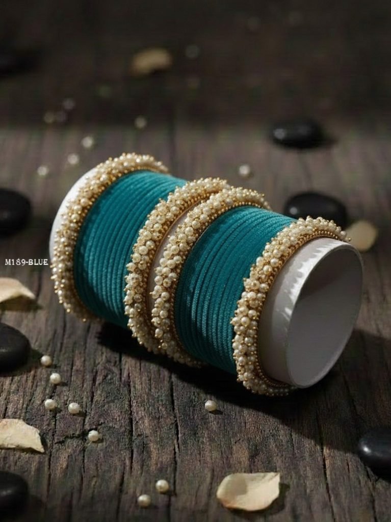 • Bridal  Wear Green Velvet Bangle With Pearl Kada