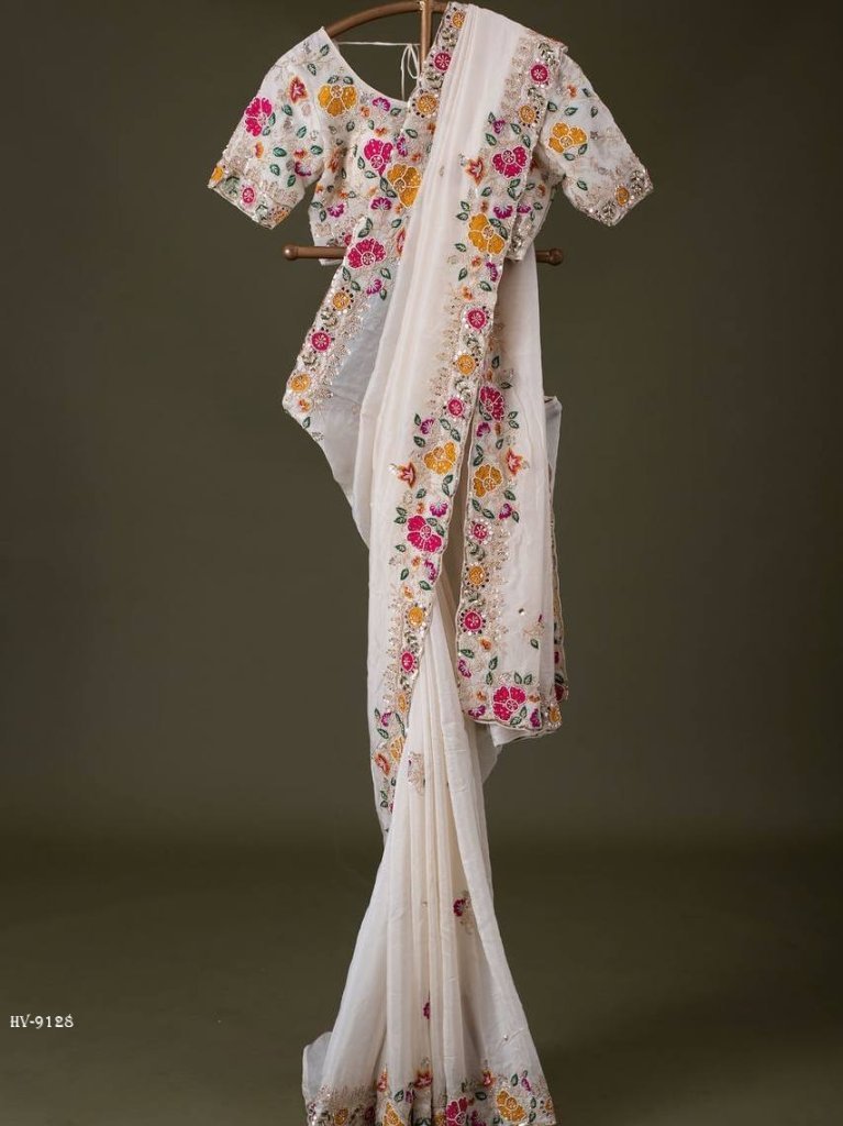 One More Super hit Chinnon Silk Embroidery Saree Design Launch