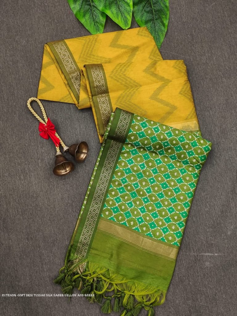 Fabric: Soft Desi Tussar silk saree with all over laheriya (zigzag) pattern and traditional rich ikkat pallu with tiny contrast zari woven border and fancy tassels with contrast fully ikkat weaves blouse piece