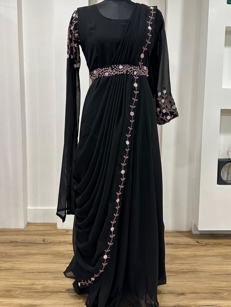 Fabric :Georgette Gown With Sequins & Dori WorkLength 56Flair 4.5 MeterGeorgette Dupatta With Sequins & Dori WorkSequins & Dori Work Belt GivenAvailable In Two SizesM (38) , Xl (42)