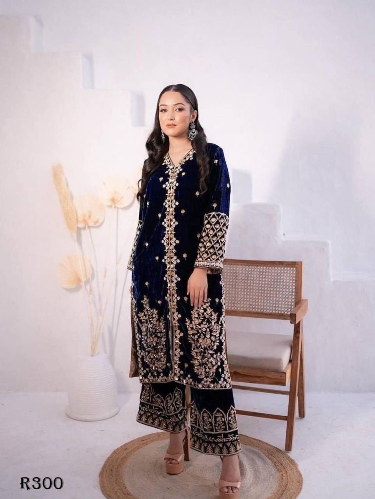 TOP : HEAVY 9000 VELVET WITH SEQUENCE EMBROIDERY WORK (FULLY STITCHED)